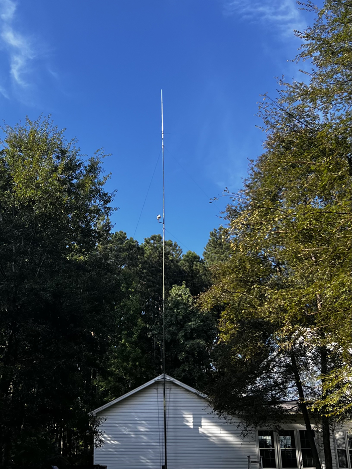 I use a Hustler G-6 antenna for 2m fm/70cm fm topping out at 75 ft. |