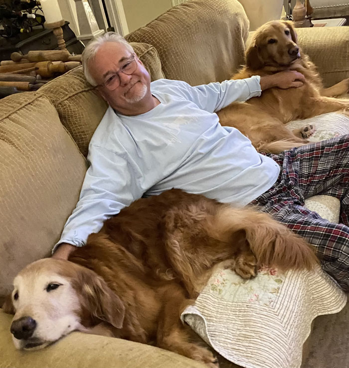two Goldens Jakey "RIP" 1/25/2024 and Beau.